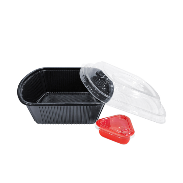 ظرف یکبار مصرف سالاد کد 608 یکی از محصولات شرکت مهر پارسا است. رنگ بدنه مشکی و درب آن شفاف است و ابعاد ظرف یکبار مصرف سالاد ترموفرمینگ طول 22.5، عرض19و ارتفاع 7.5 سانتی متر است و از قابلیت های این ظرف دارا بودن کاپ سس و نشان فودگرید آن اشاره کرد. یکی از نکات کلیدی که این ظرف را مناسب بستهبندی مواد غذایی سرد و گرم میکند، عدم وجود ماده مضر BPA است. ظرفیت حجمی این ظرف 1800 سی سی بوده و دارای ضخامت مناسب و استحکام کافی است.